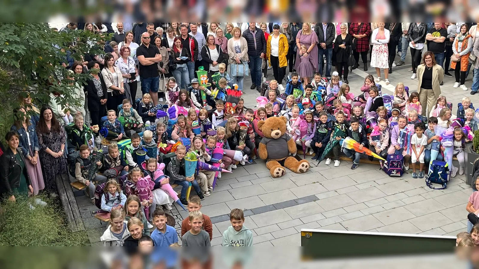 In drei Klassen starteten 65 Schulanfänger ihre Schullaufbahn an der Theobald-Schrems-Grundschule in Mitterteich. Auf dem Pausenhof wurden sie von Rektorin Petra Andritzky und den Erstklasslehrerinnen Angela Franz, Corinna Ehrlich und Lena Vates mit ihren Familien begrüßt. Nicht fehlen durfte dabei auch Schulmaskottchen Theo. Nachdem die 4. Klassen noch ein Begrüßungslied für die ABC-Schützen gesungen hatten, durften sie mit ihren Lehrerinnen zur ersten Unterrichtsstunde ins Klassenzimmer gehen. Das Elternbeiratsteam um Carola Wölfl bewirtete derweil die Eltern mit Kaffee und Kuchen.