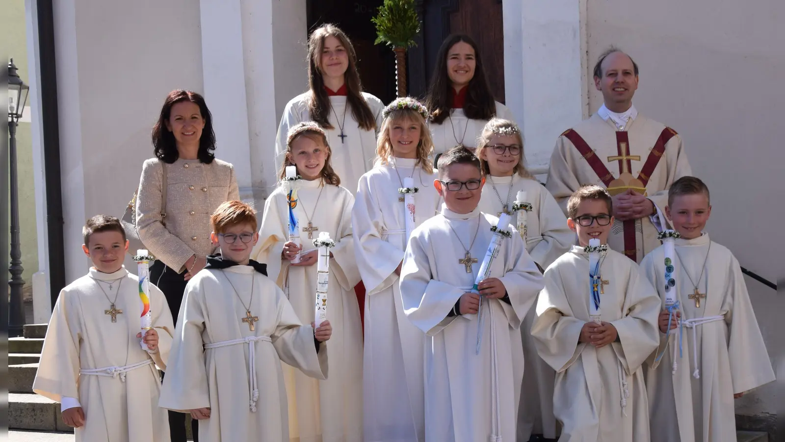 Drei Kinder kommen aus Ransbach, zwei aus Hohenburg, zwei aus Allersburg und ein Kind aus Mendorferbuch. Um die Vorbereitung der Erstkommunionkinder haben sich Renate Gradl und Nadine Steindl aus Ransbach und Stephanie Lorenz aus Allersburg. Von Seiten der Schule haben Klassenleiterin Nina Bayer und Rektorin Christine Kölbl die Erstkommunionkinder betreut. Den Gottesdienst hat die Chorgemeinschaft „PROfeel 2” unter der Leitung von Martin Braden gestaltet.
