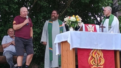 Vor 40 Jahren entstand auf Initiative des damaligen Eschenfeldener Pfarrers Hermann Walther ein Glockenturm am Ortsrand von Mittelreinbach. Durch Sach- und Geldspenden sowie tatkräftiger Mithilfe der Dorfbewohner von Gaisheim und Mittelreinbach konnte das Vorhaben Ende 1985 vollendet und die Glocke aus der Passauer Werkstatt der Firma Perner in den Glockenstuhl des neuen Holzturms montiert werden. Ein elektrisches Läutewerk lässt drei Mal am Tag die Glocke durchs Tal klingen. Seit Beginn findet jeweils am zweiten Freitag im Juli am Fuße des Turmes ein ökumenischer Feldgottesdienst statt. Da dieses Jahr zwar Wolken, aber weder Sturm noch Hagel gemeldet waren, versammelten sich erfreulich viele Besucher auch aus umliegenden Ortschaften. Durch den Gottesdienst leiteten Diakon Bernd Deyerl aus Eschenfelden und sein katholischer Amtsbruder Pfarrer Roland Klein aus Neukirchen. Die musikalische Umrahmung übernahm wieder in bewährter Weise der Posaunenchor aus Eschenfelden unter Leitung von Dominik Schwab. Der Predigt von Diakon Bernd Deyerl lag die „Bergpredigt“ nach Lukas 6, 36 zugrunde. Im Dorf gibt es immer Gesprächsstoff. Habt’s schou g’hert? so beginnt manches Gespräch. Es gibt viel zu reden, kritisieren und politisieren und man legt sich oft vorschnell eine Meinung zu recht. In der Bergpredigt hält Jesus uns den Spiegel vor. „Was siehst du den Splitter in deines Bruders Auge, und den Balken in deinem Auge siehst du nicht?“. Es ist immer einfacher, die Fehler der Anderen zu kritisieren, als eigene Versäumnisse einzugestehen. Wir sollten uns immer vor Augen halten, dass wer kritisiert nicht über einem anderen, sondern mit ihm auf einer Stufe steht. Jesus bittet uns: Seid barmherzig, wie auch Gott zu euch barmherzig ist. Barmherzigkeit ist die Basis für unser Leben. Alles was wir für uns in Anspruch nehmen, sollte doch auch für andere gelten. Aus Güte leben wir, nicht aus Zwang. Dass wir auch gütig mit anderen sind, das erwartet Jesus von uns als seinen Nachfolgerinnen und Nachfolgern. Gegen Gleichgültigkeit, Gewissenlosigkeit und Ungerechtigkeit muss man seine Stimme erheben und sich einmischen. Nicht Kritik ist als solche unchristlich, sondern vernichtende Kritik. Vorstand Kurt Stielper lud alle Besucher nach dem Gottesdienst zum gemütlichen Beisammensein zu Bratwürsten vom Grill, kühlen Getränken sowie Kaffee und Kuchen ein. Bei Einbruch der Dämmerung zeigte Siegfried Dotzler aus Gaisheim, der seiner Zeit die treibende Kraft des Glockenturmbaues mit war, seinen Super-8-Film über die Entstehung des Glockenturms. Angefangen vom Fällen der gespendeten Bäume, dem Abbinden des Bauholzes, zum Aufstellen des Turms, über den Glockenguss in Passau bis hin zur Glockenweihe spannte er den Bogen der Erinnerung. Manche freudige Bemerkung wie „Kennst den nu?“ oder „Wor ma dou nu jung“ war dabei im Festzelt zu hören.