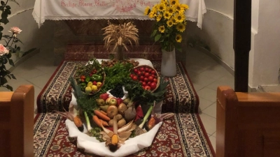 Die Dorfkapelle „Mariä Himmelfahrt“ in Pondorf war bis auf den letzten Platz gefüllt, als der Frauenbund Winklarn am Erntedank-Sonntag dort einen Oktoberrosenkranz gestaltete.