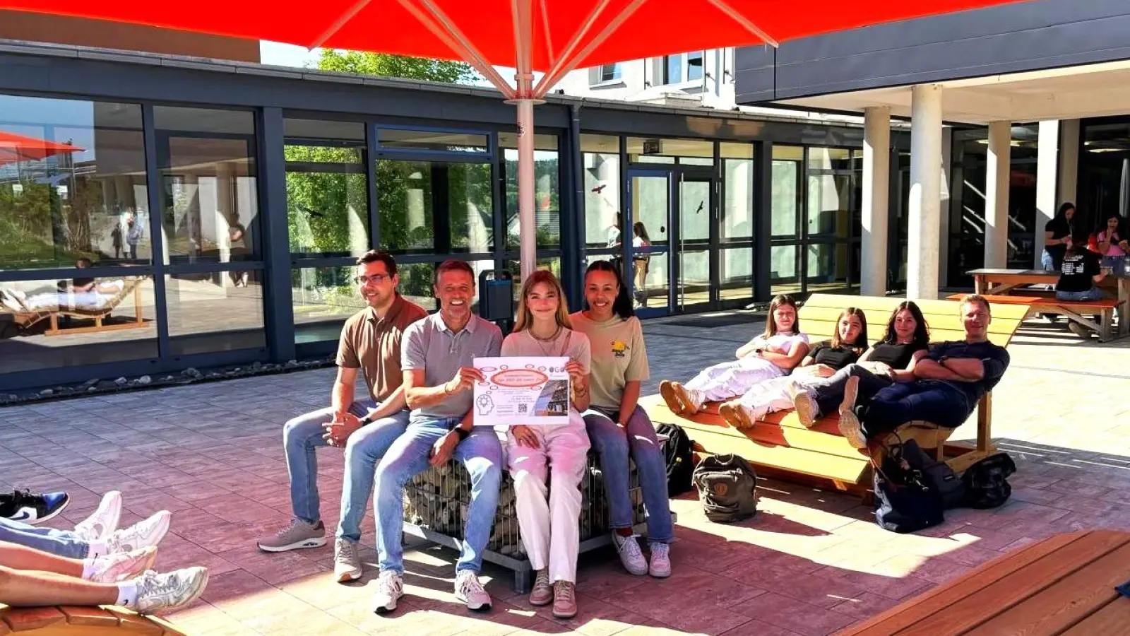 10000 Euro stellt der Förderverein „Die Ortenburger“ alljährlich für Projekte der Schülerinnen und Schüler am Ortenburg-Gymnasium zur Verfügung. Die Jugendlichen entwickeln diese Projekte selbst und bewerben sich bei den „Ortenburgern“ um die entsprechende finanzielle Unterstützung. So konnte in den zurückliegenden Jahren eine Vielzahl von Aktivitäten umgesetzt werden, dies mit dem Fokus, das ohnehin schon sehr gute Schulleben noch weiter zum Wohl der Schülerinnen und Schüler zu optimieren. Dieser Zielsetzung entspricht auch die jüngste Anschaffung von drei Sonnenschirmen und drei Sonnenliegen im Pausenhof, wo die Relax-Ausstattung rechtzeitig zur warmen Jahreszeit aufgebaut wurde. Die offizielle Übergabe an die Jugendlichen durch den 1. Vorsitzenden Manfred Klug erfolgte im Beisein des Schulleiters Ludwig Pfeiffer, der Verbindungslehrer Andre Bauer und Thomas Meserth sowie Vertretern der Schülermitverantwortung (SMV). Die Resonanz war äußerst positiv, was sich spontan an der hohen Nutzungsfrequenz zeigte. Bei dieser Gelegenheit gab Manfred Klug bekannt, dass auch dieses Schuljahr die „10000-Euro-Aktion“ wieder durchgeführt wird. Schülerinnen und Schüler haben somit erneut die Chance, sich um die Förderung ihrer Projekte zu bewerben. „Die Ortenburger“ bedanken sich bei ihren Förderern, Sponsoren und Mitgliedern für die großzügige Unterstützung, die solche Aktivitäten erst möglich machen.