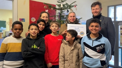 Am kommenden Wochenende hält der AK Asyl seine Weihnachtsfeier ab. Da kam ein Scheck vom Lions Club Goldene Straße genau zur richtigen Zeit. 2.000;- Euro, der Erlös aus dem diesjährigen Weihnachtsbaumverkauf, wurde von Past-Präsident Christoph Skutella, Mitgliedsbeauftragter Kornelia Sparrer und Vorstandsmitglied Hubert Schober an die pädagogische Leiterin Daniela Dütsch im Beisein einiger Jugendlicher überreicht. Derzeit betreuen zirka 30 Ehrenamtliche, Mini-Jobber und auch festangestellte Mitarbeiter 168 Kinder und Jugendliche von der 1. bis zur 13 Klasse, teils bis 18:00 Uhr am Abend. Die Kinder werden dabei bei den Hausaufgaben betreut, erhalten aber auch ein vollwertiges Mittagessen mit Nahrungsmitteln vorwiegend aus biologischem Anbau und aus der Region. „Wir sind alle Menschen und keine Nationen. Kinder und Jugendlichen aus vielen Teilen der Welt mit den unterschiedlichsten Religionen leben und lernen hier zusammen. Gut 80% schaffen dabei einen Schulabschluss, eine bessere Integration und Prävention kann es kaum geben“, so Daniela Dütsch. Ihr und auch der sehnlichste Wunsch aller Mitarbeiter: Eine Zusage der Stadt Weiden die Unterstützung auch für das nächste Schuljahr aufrecht zu erhalten. Gleichzeitig ergeht ein Aufruf an alle Willigen, den AK Asyl mit Spenden zu unterstützen, außerdem werden immer „Lese-Omas“ gesucht.