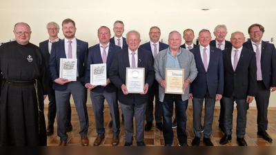 Seit neun Jahrzehnten gibt es den Bergchor St. Barbara aus Schwarzenfeld. Dies haben die Verantwortlichen des Männerchores zum Anlass genommen, um Rückschau zu halten, die gegenwärtige Situation zu beleuchten und im Rahmen eines Gottesdienstes in der Miesbergkirche der verstorbenen Sängerkameraden zu gedenken. Es gehört zu den elementaren Aufgaben und Zielen der Gemeinschaft von über vierzig Sängern, die Messen an Sonn- und Feiertagen in der Wallfahrtskirche vorwiegend gesanglich und musikalisch zu gestalten. Dabei kommt der gesellige Aspekt neben teils anspruchsvoller Kirchenmusik nicht zu kurz. Mit Gründung des Klosters im Jahre 1934 haben sich über dreißig Schwarzenfelder Männer zusammengefunden, um mit ihren Stimmen die Messfeiern in der Dreifaltigkeitskirche zu umrahmen. Das Geburtsjahr einer erfolgreichen Gemeinschaft, die sich bis zum heutigen Tag in beispielloser Kameradschaft dem Kirchengesang , aber auch der Musik zu weltlichen Anlässen verschrieben hat. „Bergchorsänger zu sein, es bedeutet Freude, aber auch in mancher Hinsicht Verzicht zu üben, wenn die Probenarbeit vor Festtagen oder sonstigen Auftritten das übliche Maß etwas überschreitet“ so Vorsitzender Alois Graf bei einer Zusammenkunft im Pfarrheim der Pfarrei. Ehemalige Vorstände und Dirigenten, aber auch Sänger aus früheren Jahren gehören zusammen mit Ehefrauen und Kindern zu den Gästen des Festtages. „Der Bergchor und wir, die Passionisten vom Kloster, wir bilden eine Einheit, was nicht nur im gemeinsamen Glauben, sondern in tiefer Freundschaft untereinander zum Ausdruck kommt“ richtet Provinzial Pater Lukas Temme seinen Gruß an die Gäste. Mit zwei gelungenen Überraschungen konnte Vorstand Alois Graf bei dieser Jubiläumsfeier aufwarten. Peter Kochherr, seit vielen Jahrzehnten Mitglied und über 22 Jahre als akribischer Notenwart tätig, wurde zusammen mit Bernd Ulbrich zum Ehrenmitglied ernannt. Die Verdienste von Bernd Ulbrich für die Chorgemeinschaft sind vielfältig. Vorstandsmitglied über Jahrzehnte hinweg bis heute, Dirigent in erster und zweiter Reihe, sowie organisatorischer Kopf bei der Liedauswahl sind nur einige der Bereiche seines Engagements. „Dir hat der Bergchor zu verdanken, dass er heute feiern kann“ so die Laudatio von Vorstand Alois Graf, bei der er die schwierige Zeit Anfang der Achtziger nach einer Umstrukturierung im Chor aufzeigte. Erfreulich für den Jubiläumschor, der sich jeden Mittwoch im Restaurant Miesberg zur Probe trifft, dass er inzwischen auch auf jüngere Sänger setzen kann, wobei natürlich weiterer „Nachwuchs“ gerne gesehen und eingeladen ist.