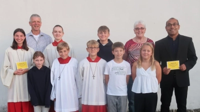 Der Schnäppchen- und Flohmarktladen der Pfarrei Vilseck verteilte zum wiederholten Male Summen, die aus dem Verkauf gespendeter Waren aller Art erlöst worden waren. Beim Bergfest durften sich die Vilsecker Ministranten über 300 Euro freuen, die sie als Zuschuss für einen Ausflug verwenden wollen. Für kleine Instandhaltungsarbeiten an der Bergkirche übergab Ladenchefin Veronika Pröls 200 Euro an Pfarrvikar Pater Jimmy Joseph. Die Beschenkten freuten sich über die Zuwendungen und versprachen, auch selbst einmal samstags im Schnäppchenladen in der Breslauer Straße vorbeizuschauen.