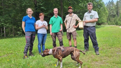 An einem Sommertag trafen sich Roman Diezel und Aline Schwarz von den Fachstellen Waldnaturschutz Oberfranken und Oberpfalz, Stefanie Jessolat, ehrenamtliche Gartenschläferbeauftragte des BN und Nico Daume vom Naturpark Fichtelgebirge mit Stadtwaldförster Reinhard Herrmann, um einige Kästen im Stadtwald Kemnath zu platzieren. Die Kästen werden in Zukunft regelmäßig durch Nico Daume auf Spuren des Gartenschläfers untersucht. „Hier sehen wir uns sehr schön in einen Schulterschluss. Der BN zusammen mit den Wissenschaftlern der Senckenberg Gesellschaft für Naturforschung und der Justus-Liebig-Universität Gießen, welche das Projekt 2018 auf die Beine gestellt haben. Der Naturpark Fichtelgebirge, welcher die Proben zur genetischen Verbreitung sammelt. Und die Waldbesitzenden, die den Lebensraum für den Gartenschläfer erhalten und z.B. durch Schaffung von Waldsäumen fördern” so Jessolat. Im Stadtwald Kemnath finden sich alle Strukturen wieder, die Gartenschläfer als Lebensraum schätzen. Ein gemischter Wald in verschiedenen Altersstadien mit Totholz, Biotop- und Höhlenbäumen, Streuobstwiese, kleinen Quellen und Bachlauf, bietet dem Bilch sowohl einen reich gedeckten Tisch als auch vielfältige Rückzugsorte. Naturschutzfachliche Rahmenbedingungen, die die Stadt Kemnath seit Jahren in die Bewirtschaftung integriert hat und die auch seitens des Freistaates Bayern über das Vertragsnaturschutzprogramm Wald (VNP Wald) oder die Waldbauliche Förderung finanziell unterstützt werden.