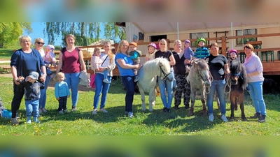 Die Draußen-Elternkind-Gruppen besuchten im Rahmen der Gruppenstunden einen Reiterhof. Augenmerk war dabei der Umgang mit Tieren.