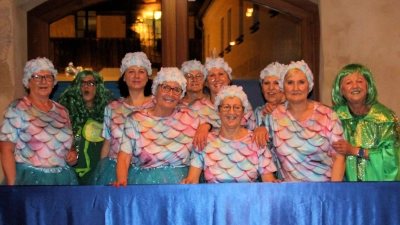 Der Katholische Frauenbund-Fasching feierte am Donnerstag seinen Weiberfasching im Schlossstodl. Es war wieder ein High Light im Gemeindebereich. Dafür verantwortlich zeigten sich der Auftritt des Frauenbundes, viele wunderbare Kostüme und nicht zuletzt das Faschingskomitee Schmidmühlen mit gesamtem Hofstaat. Der Schlossstodl war gefüllt mit vielen maskierten, faschingsbegeisterten Frauen. Die sehr tanzfreudigen Frauen fühlten sich sehr wohl und eine immer gut gefüllte Tanzfläche zeigte dies. Ein reichhaltiges und abwechslungsreiches Programm bot der Frauenbund seinen Besuchern. Nach der ersten Tanzrunde erfolgte die Einlage des Frauenbundes. Zu den Höhepunkten gehörte der Auftritt der Badenixen in der fünften Jahreszeit. Mit Bademantel, blauem Rock und Schuppen-Shirt machten sie sich unter dem Trillerpfeifen-Kommando von Barbara Hierl auf um ihre Kunststücke zu zeigen. Im Anschluss daran wurde von den Besuchern, die sich fantasievolle Kostüme ausgesucht hatten, das Tanzbein geschwungen. Ob Modern oder Bayrisch, eine sehr gefüllte Tanzfläche zeigte, dass es den Frauen sichtlich Spaß machte. Zum Höhepunkt des Frauenbundfaschings zog das Schmidmühlner Faschingskomitee mit dem Prinzenpaar und dem gesamten Hofstaat und den Garden in den Schlossstodl ein. Mit viel Beifall und dem Schlachtruf „Schmidmühlen - Oho” wurde die große Garde begrüßt. Zur späteren Stunde hatte das Männerballett ihren Auftritt und auch sie konnten nur unter der Zugabe die Tanzfläche verlassen.