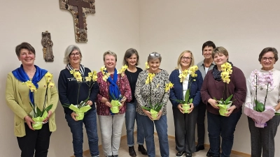 Die Vorsitzenden Gisela Eckl und Karin Weiß konnten 38 Mitglieder und Pfarrvikar Christian Ogu begrüßen. Bei der Totenehrung wurden den seit der letzten Jahreshauptversammlung verstorbenen Mitgliedern Cäcilia Schart (Gründungsmitglied), Michaela Wilhelm, Maria Hofmann (Gründungsmitglied und Ehrenvorsitzenden) und Anneliese Singer gedacht. Pfarrvikar Christian Ogu sprach ein kurzes Grußwort. Es folgten die Berichte der Vorstandschaft. Die aktuelle Mitgliederzahl beträgt 161 Mitglieder, darunter ein neues Mitglied aus dem Jahr 2024. Schatzmeisterin Josefine Setzer informierte über Kassengeschäfte. Es folgte der Bericht der Schriftführerin Anita Schmid über die durchgeführten Veranstaltungen: 4 Vorstandschaftssitzungen, die Adventsfeier, die Friedensandacht, Faschingsfrühstück, ein Kochkurs, das Palmbüschelbinden, ein Selbstverteidigungskurs, eine 2-Tages Fahrt nach Leipzig, eine Radtour nach Perschen, Landkreislauf, Musicalfahrt zur Luisenburg, Radtour zum Brünnl mit Rosenkranzgebet, die Verabschiedung von Pfarrer Rosner und ein Vortrag von Thomas Wittleben über Viamin D. Nach den Berichten wurden einige Mitglieder für ihre langjährige Mitgliedschaft geehrt. Für 10 Jahre waren dies Gabi Attenberger, Steffi Frankenstein, Silvia Schönberger, Edeltraud Schwandner. Entschuldigt waren Anja Grundmann, Anita Schwandner, Christine Wellnhofer. Für 40 Jahre Mitgliedschaft: Maria Fornasiere, Martha Saalbach. Entschuldigt waren Hannelore Wabro und Irmgard Fröhlich. Als kleine Aufmerksamkeit bekamen die Frauen für 10-jährige Mitgliedschaft eine Orchidee überreicht. Für 40 Jahre bekamen die Frauen eine Orchidee, einen Piccolo und die goldene Ehrennadel des KDFB überreicht. Die goldene Ehrennadel wurde von der stellvertretenden Diözesanvorsitzenden Rita Kleierl überreicht. Am Ende der Jahreshauptversammlung wurden alle noch zum Essen eingeladen. Es gab traditionell Häutige Erdäpfel, Quark, Buttermilch, Butter und Brot.
