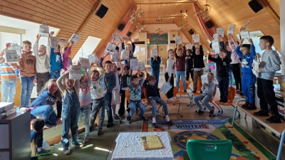 Im Rahmen des Sachunterrichts und der Aktion „Alltags-kompetenzen - Schule des Lebens” organisierte Rektorin Andrea Wolfram zusammen mit dem Imkerverein Kirchenthumbach einen Workshop zum Thema „Die Honigbiene“. Die Imker Florian Kroher und Florian König transportierten Schautafeln, Bienenkästen und Unmengen an Imkerbedarf in den Mehrzweckraum der Grundschule Kirchenthumbach. Nachdem alles aufgebaut war, durften die Schüler in einem großen Stuhlkreis Platz nehmen. Florian König fragte zunächst das Vorwissen der Erstklässler ab und erklärte kleinschrittig Wissenswertes über das Bienenvolk und die Imkerei. Florian Kroher ergänzte sehr anschaulich mit den mitgebrachten Dingen, wie das Leben der Bienen im Bienenstock abläuft und wie die Honiggewinnung von statten geht. Somit wurde einiges Wissen wiederholt, das die Kinder bereits im Unterricht gelernt hatten, z.B. welche unterschiedlichen Bienen es in einem Bienenvolk gibt und welche Aufgaben diese haben. Es gab aber auch sehr viel Neues zu erfahren, nämlich wo eine Bienenkönigin herkommt, wann sie ausschwärmt und was dann mit diesem Bienenschwarm passiert. Auch die Bestäubung der Pflanzen als wichtige Aufgabe der Bienen wurde thematisiert und von den Imkern kindgerecht erklärt. Mit einem zweiseitigen Bienenquiz wurde die Thematik wiederholt und vertieft. Die Schüler wurden nicht müde, Fragen zu stellen und waren sehr interessiert bei der Sache. Zur Brotzeit gab es frische Semmeln mit echtem „Dumbächer Honig“, den die beiden Experten mitbrachten. Die Kinder waren begeistert von dem leckeren Pausenbrot und löcherten die Imker sogar während der Pause mit Fragen. Zum Abschluss bedankten sich die Schüler und Frau Wolfram bei den Bienenfachleuten für die sehr informativen und lehrreichen Schulstunden.