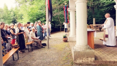 Am Eslarner Ortsteil Goldberg zwischen Eslarn und der tschechischen Grenze bereichert eine Waldkapelle mit einem kleinen Kreuzweg die Waldidylle. Die Kapelle „Maria Heimsuchung” wurde von Landsleuten aus dem böhmischen Eisendorf (Zelezna/CZ) und Umgebung unter der Regie von Karl Hackl erbaut und 1975 eingeweiht. Gleichzeitig wird an die baugleiche, verfallene Kapelle, vier Kilometer östlich bei Karlova Hut/CZ (Karlbach Hütte) erinnert. Zwei an der Goldbergkapelle aufgestellten Eingangssäulen vom verfallenen Kirchlein und ein seit 50 Jahren alljährlich am 1. Julisonntag gefeierter Freiluft-Gottesdienst verbinden die beiden Sakralbauten mit der ehemals böhmischen Heimat. An der Spitze der Eisendorfer-Gemeinschaft standen bisher die Ortsvorsteher Emil Reimer, Karl Hoffmann, Rudolf Forster und Toni Ziegler. Nach der Gründung des Heimatvereins „Eisendorf und Umgebung” 1993 stieg die Mitgliederzahl auf 200 und der neue Ortsvorsteher Josef Hoffmann schnitzte als Schreinermeister für das Kirchlein einen Altar und Betstuhl. Zudem erstellte Hoffmann eine Schautafel, die der langjährige Kapellenpfleger und Schulhausmeister Hans Kaiser (2021 verstorben) mit einer Eiseneinfassung verzierte und in der Heimatforscher Wilhelm Kleber (2017 verstorben) die Bilder aller Gefallenen und Vermissten des zweiten Weltkrieges aus dem Kirchensprengel verewigte. Aktuell kümmerte sich Elisabeth Würfl um die Pflege der Kapelle. „Eigentlich sollte zum 50. Jubiläum die Fassade der Kapelle verschönert werden, aber trotz Vorsprache bei der Gemeinde und vorhandener angesparter Finanzmittel für die Kapelle ist leider nichts geschehen”, fügte Würfl an. Da die Mitgliederzahlen stets niedriger, das Durchschnittsalter immer höher wurden und viele aus Krankheit nicht mehr vor Ort sein konnten, wurde der Heimatverein im Juli 2023 in einer Interessensgemeinschaft mit Sprecher Waldemar Hansl weitergeführt. Wichtig für die ehemals böhmische Bevölkerung ist die Aufrechterhaltung der Tradition und der Geschichte. Ein erfreulicher Höhepunkt für die ehemalige Dorfgemeinschaft war die Grenzöffnung 1990, die Restaurierung des Steinockkreuzes und des Kriegerdenkmals in Zelezna. In dem Zusammenhang ging für die Unterstützung ein Dank an den tschechischen Bürgermeister Libor Picka in Belá nad Radbuzou (Weißensulz). Leider musste die Gedenkfeier am Ehrenmal in Zelezna/CZ wegen aktueller Straßenbauarbeiten in diesem Jahr ausfallen. Beim Traditionstreffen an der Waldkapelle konnte Ehrenvorsitzender Josef Hoffmann, der mit seiner Tochter und dem Schwiegersohn 350 Kilometer aus Baden-Württemberg angereist war, besonders Monsignore Gerhard Hettler aus Passau und zweiten Bürgermeister Thomas Kleber begrüßen. In den Kreis der Eslarner mischten sich Gäste und Urlauber aus Süddeutschland. Seit 50 Jahren treffen sich ehemalige Landsleute aus der böhmischen Heimat an der Kapelle „Maria Heimsuchung” zur Messfeier. Erfreut war die Gemeinschaft über die Anwesenheit einer Fahnenabordnung des Krieger- und Soldatenvereins und der Schlossbergkapelle. Die sechs Blechbläser umrahmten musikalisch mit der sogenannten Deutschen Messe, einem geistliches Musikwerk von Komponisten Franz Schubert, die Messfeier. Den Freiluftgottesdienst zelebrierte Heimatpfarrer Monsignore Gerhard Hettler aus Passau, dessen Eltern böhmische Wurzeln hatten. Passend zur Vertreibung aus der böhmischen Heimat eröffneten die Musiker mit der Schubert-Messe mit „Wohin soll ich mich wenden, wenn Gram und Schmerz mich drücken” das Traditions-Treffen. Auch für Monsignore Hettler heißt es nach seiner Krankheit „gemach, gemach”, wie er selber sagt. Der Geistliche blickte in früheren Zeiten, erinnerte an das Brauchtum und die Kindheit seiner Eltern und der Landsleute in Böhmen und streifte aktuelle Zeiten. Im Zusammenhang mit der Namensgebung der Kapelle „Maria Heimsuchung” predigte der Priester vom biblischen Ereignis aus dem Lukasevangelium und von der Begegnung zwischen der schwangeren Maria und ihrer von Johannes den Täufer schwangeren Verwandten Elisabeth. Nach dem Böhmerwaldlied und Segen mündete das Treffen in ein gemütliches Beisammensein beim Zoiglwirt „Strehern”. Bevor sich alle wieder auf dem Nachhauseweg machten, wurden bei einem leckeren Braten Erinnerung ausgetauscht.