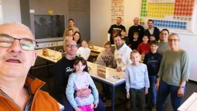 Die Volkshochschule (vhs) veranstaltete im Rahmen der Reihe „MINT am Samstag” in Kooperation mit dem Stiftland-Gymnasium eine naturwissenschaftliche Experimentier-Reihe, die sich im Rahmen der MINT-Förderung speziell an Kinder der 3. und 4. Klassen an Grundschulen wendet. Insgesamt 36 Eltern-Kind-Paare machten vom Angebot in drei Kursen Gebrauch und sollten es nicht bereuen, an einem eigentlich schulfreien Samstag früh aufgestanden zu sein. Chemielehrer Uli Roth hatte als Kursleiter unter dem Motto „Chemie – alles, was kracht und stinkt” interessante und abwechslungsreiche Versuche zusammengestellt, die die kleinen Forscher gefahrlos im Schullabor selbst durchführen konnten. Zu Beginn gab es jeweils eine kurze Sicherheitsbelehrung und eine kleine Einführung in das Tagesprogramm. Die Kinder bestaunten die Farbumschläge von Indikatoren, zauberten Kerzenflammen mit Hilfe von Kohlenstoffdioxidgas aus und hatten viel Freude an den bunten Flammenfarben des Bunsenbrenners. Nicht fehlen durfte natürlich eine Knallgasreaktion, die Roth als Demo-Experiment hinter einer Schutzscheibe durchführte. Das Chemie-Angebot war so gut nachgefragt, dass sich die vhs entschloss, einen Zusatzkurs anzubieten, der ebenfalls im Nu ausgebucht war. Schon im Oktober 2024 fand ein Mikroskopier-Kurs unter Anleitung von Kursleiter Uli Roth statt. Aufgrund der positiven Rückmeldungen werden diese Angebote auch im nächsten vhs-Kursjahr fortgesetzt.