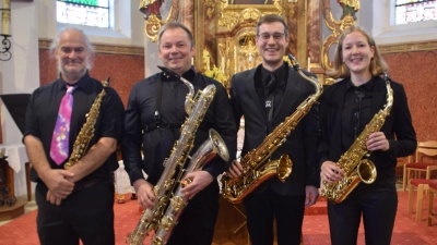 Zum Abschluss der diesjährigen Mausbergfestwoche gastierte das Saxophon-Quartett mit dem Namen „Saxendi“ in der Wallfahrtskirche. Die vier Musiker, Gerhard Böller, Simon Lösch, Sebastian Dorfner und Julia Dorfner, die sich erst im vergangenen Jahr zu dieser Formation zusammenfanden, haben alle eine fundierte und hochqualifizierte musikalische Ausbildung und sind teils in mehreren Orchestern und Ensembles engagiert. Ihren ersten Konzertauftritt hatten sie im vergangenen Jahr in Steiningloh, im Rahmen des 44-jährigen Vereinsjubiläums der Blasmusik Gebenbach. Sie präsentierten den Zuhörern in der annähernd vollbesetzten Kirche klassische Werke unter anderem von G. F. Händel, W. A. Mozart, Karl Jenkins, J. Pachelbel und J. S. Bach, die sie sehr leidenschaftlich, gefühlvoll und überzeugend intonierten. Der Lohn für einen überaus gelungenen Auftritt war ein langanhaltender Applaus der beeindruckten Konzertbesucher, sowie der Ruf nach weiteren Zugaben, welche die Musiker gerne erfüllten. Für Julia und Sebastian Dorfner war es eine besondere Rückkehr in die Mausbergkirche an den Ort, an dem sie sich erst vor wenigen Wochen das Jawort gegeben hatten. Freiwillige Spenden kamen dem Unterhalt der Wallfahrtskirche zugute.