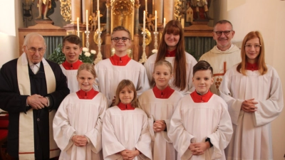 Am Christkönigssonntag begrüßte Pfr. Dr. Vogl die neuen Ministranten Dostler Corinna, Brandl Victoria, Anna Wurm und Julian Siller in der Pfarrkirche St. Emmeram. Die Pfarrei Münchenreuth heißt die Minis herzlich willkommen und freut sich, dass sie sich entschlossen haben, den Dienst am Altar des Herrn zu übernehmen. Gestaltet wurde der Gottesdienst von KLJB Münchenreuth.