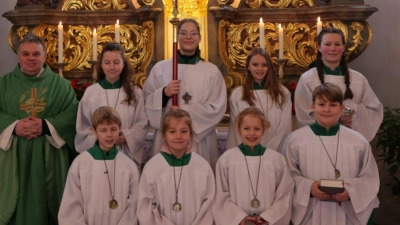 In einem Festgottesdienst wurden fünf Neue in die Schar der Püchersreuther Ministranten aufgenommen. Eva Schönberger, Helene Stubenvoll, Quirin Thoma, Frieda Thoma, Pauline Thoma und Vinzent Fuhrmann werden ab sofort die Aufgaben in den Gottesdiensten nach besten Kräften erfüllen und haben sich zum Dienst am Tisch des Herrn bereit erklärt. Es ist keine Selbstverständlichkeit in der heutigen Zeit. Umso erfreulicher ist es für die Pfarrei Püchersreuth, dass sich wieder fünf Neue gefunden haben.