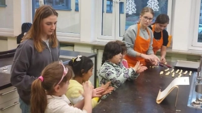 Mitte November findet seit einigen Jahren der Vorlesetag an bayerischen Schulen statt. Frau Manuela Grünauer verlegte diese Aktion kurzerhand auf den 13. Dezember 2024. Ihre Klasse 7A lud dazu die Deutschklasse von Frau Marion Steiner aus der Grundschule Neustadt ein. Zusammen buken die großen und kleinen Schülerinnen und Schüler „Schneeflocken-Plätzchen“. Dabei hatten alle einen Riesenspaß! Die Kinder wurden von Frau Grünauer, Frau Steiner, Frau Schmidberger, Frau Lobur und Frau Fröhlich unterstützt. Anschließend hörten die Kleinen eine Weihnachtsgeschichte, zu der sie ihr selbstgebackenes Weihnachtsgebäck verspeisen durften oder auch später mit nach Hause nehmen… Die Weihnachtsgeschichte „Der Weihnachtsmann reist um die Welt“ wurde von Danjelle Schmidt und Leni Girke vorgetragen. Sie zeigten den Kindern auch Bilder zur Geschichte.