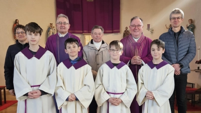 Am Ende des Sonntagsgottesdienstes in der Bruder-Konrad-Kirche verabschiedete Pfarrer Michael Birner die ausgeschiedenen Mitglieder der Kirchenverwaltung Iber: Josef Hollweck, Josef Hubmann und Herbert Flierl. Krankheitsbedingt konnte leider nur Herbert Flierl persönlich anwesend sein. Pfarrer Birner lobte das langjährige Engagement in diesem ehrenamtlichen Gremium. So gehörte Josef Hollweck seit 1983 dazu und war seit 1988 ununterbrochen auch Kirchenpfleger und teilweise auch als Mesner und Ersatzmesner tätig. In seine Amtszeit fielen eine Außenrenovierung, die Holzwurmbekämpfung mittels einer Begasung, eine Innenrenovierung, eine Orgelüberholung, um nur einige der größeren Aufgaben zu nennen. Großer zeitlicher Einsatz sei in diesem Umfeld bei den notwendigen Sitzungen und Entscheidungen zum Wohl der Kirchenstiftung geleistet worden. Josef Hubmann war seit 1989 in der Verwaltung dabei und habe sich dabei auch immer mit tatkräftigem Einsatz rund um die Kirche engagiert. Herbert Flierl war seit 1989 als gewähltes Mitglied in der Kirchenverwaltung, übernahm damals bereits die Verantwortung für den Kirchenschmuck und ab 2001 den Mesnerdienst. Pfarrer Birner nannte hier auch vielfältige Tätigkeiten, die Flierl noch neben seinen Mesneraufgaben wahrgenommen habe, wie die Krippengestaltung, den Blumenschmuck, das tägliche Öffnen und Schließen des Gotteshauses, die Ministranteneinweisung und noch Vieles mehr, das von ihm im Hintergrund geleistet worden sei. Für alle drei Ausgeschiedenen gab es eine Dankurkunde und ein kleines Präsent der Kirchenverwaltung. Für seinen Einsatz als Mesner über 25 Jahre konnte Herbert Flierl von Pfarrer Birner die Mesnerehrennadel entgegennehmen, die zugehörige Widmung der Urkunde von Bischof Rudolf Voderholzer verlas der neue Kirchenpfleger Markus Hubmann.