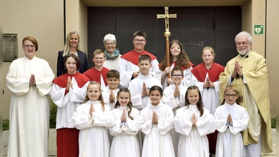 Unten den Klängen des Schwalbenmarschs, gespielt von der Blaskapelle Dießfurt zogen die acht Kommunionkinder mit Ihren Eltern in die Kirche Sankt Antonius von Padua ein. Die diesjährige Erstkommunion stand unter dem Zeichen des Fischs. Pfarrer Edmund Prechtl vergliche die Menschen als Fische im Netz Gottes, wobei das Netz Halt und Schutz gewährt. Die Vorbereitung auf die heilige Erstkommunion erfolgte unter der Regie der Gemeindereferentin, Anita Pollok. Umrahmt von einer modernen Fassung des Lieds „Fest soll mein Taufbund immer stehn“ zündeten die Kinder ihre Kommunionkerzen feierlich an der Osterkerze an. Zum Abschluss des Gottesdienstes verzauberte ein Ensemble aus Orgel und Blasmusik mit dem Lied „Großer Gott wir loben dich“, bevor der Organist Horst Plössner mit einem, auf die Orgel umkomponierte Violinsonate von Arcangelo Corelli, die Gottesdienstbesucher verabschiedete.