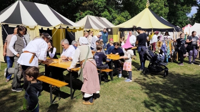 Pressather Fähnlein begeistert bei „Horto Historico” in Teublitz Ein Wochenende voller Geschichte, Spiel und Gemeinschaft: Das Pressather Fähnlein nahm erneut mit großer Freude am historischen Lager „Horto Historico” in Teublitz teil und sorgte für Begeisterung bei Jung und Alt. Mit über 58 Lagergruppen und rund 600 Teilnehmenden zählt das Feldlager in Teublitz zu den größeren seiner Art in Bayern. Das Pressather Fähnlein präsentierte sich mit traditionellen Spielen und Mitmachaktionen, die Besucherinnen und Besucher jeden Alters in vergangene Zeiten entführten. Besonders beliebt waren die historischen Spiele, die nicht nur Kinderherzen höherschlagen ließen, sondern auch Erwachsene zum Staunen brachten. Auch Gaukler Sepp Schabernack ließ es sich nicht nehmen, regelmäßig beim befreundeten Fähnlein vorbeizuschauen und für gute Stimmung zu sorgen. Sein Besuch unterstrich die enge Verbundenheit innerhalb der Lagergemeinschaft und verlieh dem Wochenende eine besonders familiäre Note. Das Pressather Fähnlein blickt auf ein gelungenes Wochenende zurück – voller Begegnungen, lebendiger Geschichte und einem Publikum, das sich mitreißen ließ.
