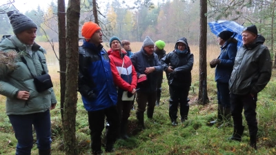 Ende Oktober führte Erwin Möhrlein im Rahmen eines Artenhilfprogrammes der Regierung der Oberpfalz zum Thema bedrohte Blütenpflanzen der Zwischenmoore und Verlandungszonen eine Exkursion. Ziel war die Tirschenreuther Teichpfanne zwischen Wiesau, Münchsgrün und Tirschenreuth. Aufgesucht wurden Standorte von den zwei im Landkreis beheimateten, fleischfressenden Sonnentau-Arten, dem Mittleren und dem Rundblättrigen Sonnentau. Zu sehen waren Seltenheiten der moorigen Standorte wie das Weiße Schnabelried, die Rosmarinheide und die Schlammsegge. Von letzterer gab es sogar während der Exkursion einen Neufund. Damit sind es nun wieder sieben Vorkommen dieser bedrohten Art im Landkreis. Vermehrt seit den trockenheißen Sommern um das Jahr 2022/2023 ist das Einbrechen von Beständen der schützenswerten Moorarten zu beobachten, können doch auf den sonst nässeren Standorten besonders in Trockenzeiten Sträucher und Bäume diese seltenen Arten verdrängen. Die Gruppe aus 15 behördlichen und ehrenamtlichen Botanikern, von denen einzelne bis aus Tschechien und Sachsen angereist kamen, beriet sich vor Ort über mögliche Schutzmaßnahmen. Diese haben in der Regel die Stabilisierung des Wasserhaushaltes zum Ziel, z.B. durch Dammsanierungen. Es können auch Entbuschungen oder eine Auflichtung von Baumbewuchs erforderlich sein. Die geringere Wasserverfügbarkeit aufgrund des Klimawandels sorgt aber leider dafür, dass einzelne Wuchsorte dieser Moorarten ganz verschwinden könnten. Und selbst bei den noch bestehenden Vorkommen gibt es, wie zum Beispiel im Falle der Schlammsegge, drastische Bestandsausdünnung um mittlerweile durchschnittlich 50 % allein in den letzten 15 Jahren. Diese Zahlen stehen Dank des regelmäßigen, durch die die Höhere Naturschutzbehörde der Regierung der Oberpfalz veranlassten Monitorings, zur Verfügung. An einer Stelle müssen übrigens Neophyten bekämpft werden. Es handelt sich um eine standortfremde fleischfressende Schlauchpflanze aus Nordamerika, die durch Gartenabfall oder bewusst ausgebracht wurde. Die Art breitet sich hier langsam aber sicher auf Kosten der bedrohten heimischen Flora mit Schnabelried und Sonnentau aus.