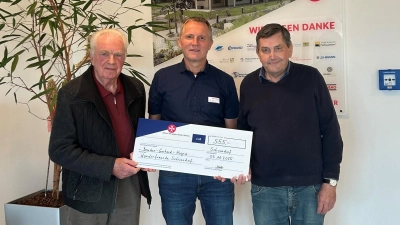 Die Wanderfreunde Schwandorf haben dem Bruder-Gerhard-Hospiz eine Spende von 555 Euro übergeben. Johann Müller, 1. Vorsitzender der Wanderfreunde, und Alois Buchmann, 2. Vorsitzender, überreichten den Spendenscheck an Manfred Seitz, Pflegedienstleiter des Hospizes.